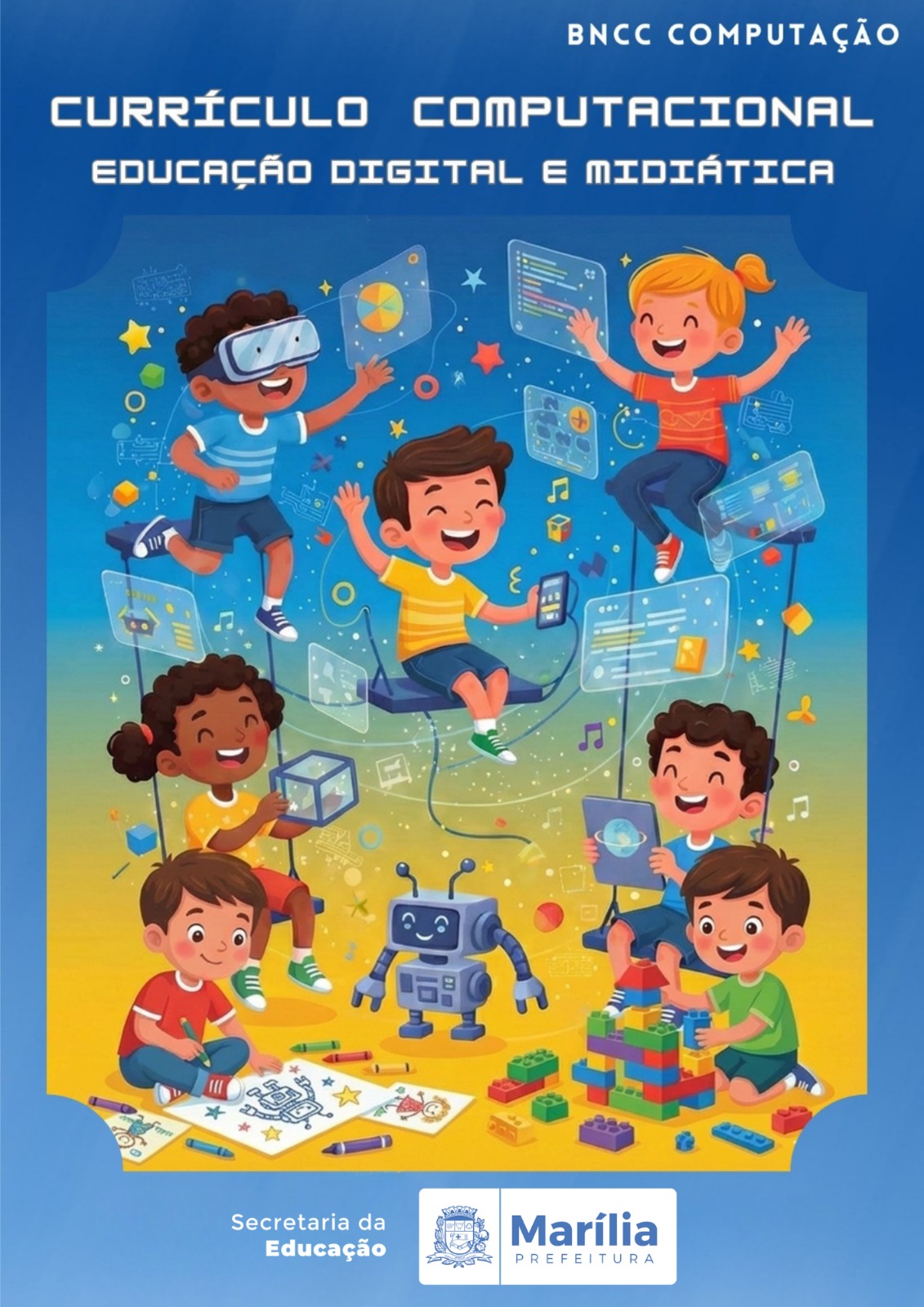 A elaboração deste material é fruto da colaboração entre docentes, equipe técnica, gestores e supervisão escolar, fundamentando-se em marcos legais decisivos, como a BNCC Computação e a Lei Federal nº 14.533/2023 (Política Nacional de Educação Digital). O documento foi oficialmente aprovado pela Deliberação CME nº 01/2025, assegurando que Marília esteja em conformidade com as normas nacionais que tornaram a computação um elemento curricular obrigatório.