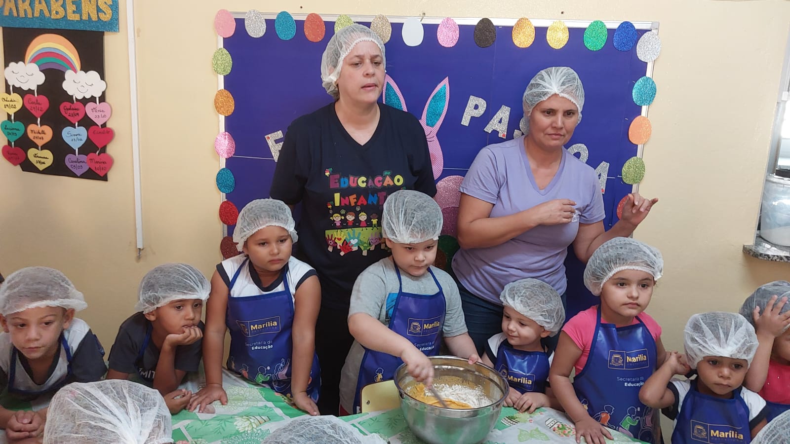 Dentre as ações realizadas, a turma participou de uma palestra simples e enriquecedora com a Coordenadora Lisete e o funcionário da limpeza Pedro Manoel. As crianças também colaboraram na escrita dos convites para esse momento, exercitando a linguagem escrita de maneira significativa.