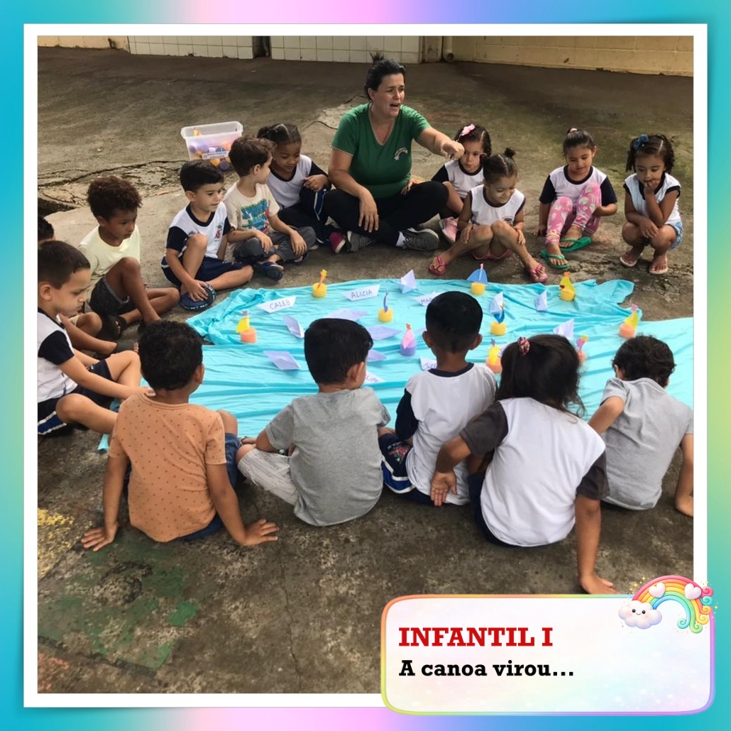 Começamos cantando a música “A Canoa Virou”, que deixou a roda ainda mais animada! A cada nome chamado na canção, os pequenos ficavam atentos e vibravam ao ouvir o próprio nome. Foi um momento de muita expectativa, alegria e participação!