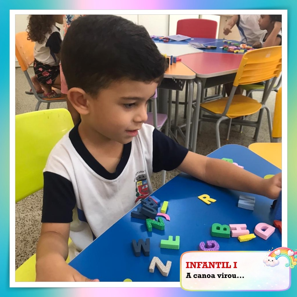 Depois da cantoria, partimos para o pareamento com as letras móveis. Cada criança recebeu seu crachá e, com bastante concentração, procurou as letras correspondentes para montar o próprio nome. Entre tentativas, descobertas e comemorações, o aprendizado aconteceu de forma leve e significativa.