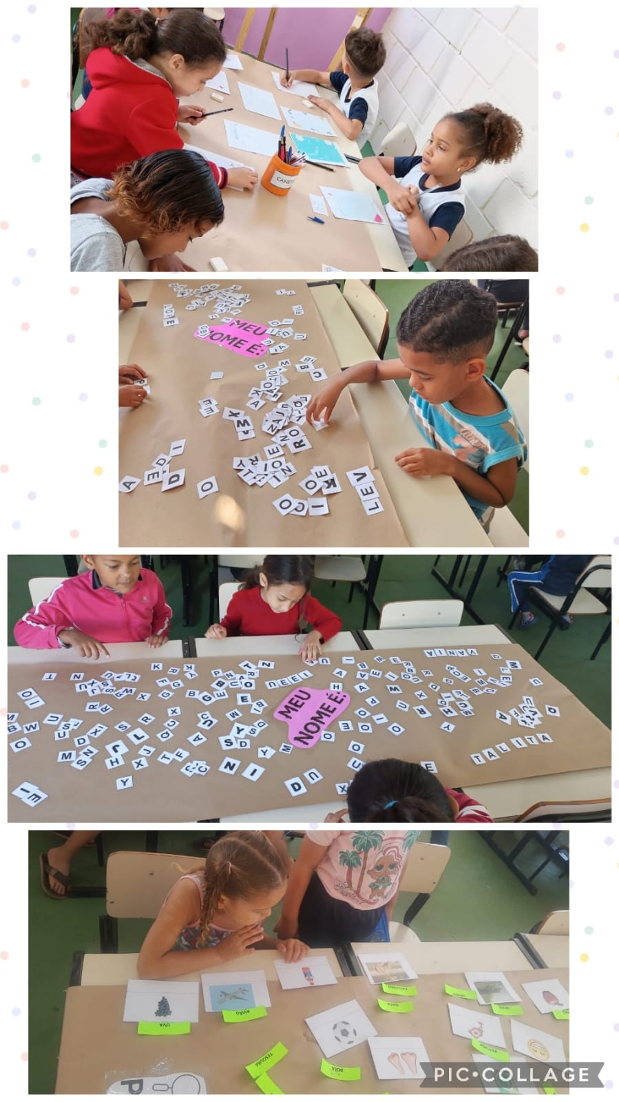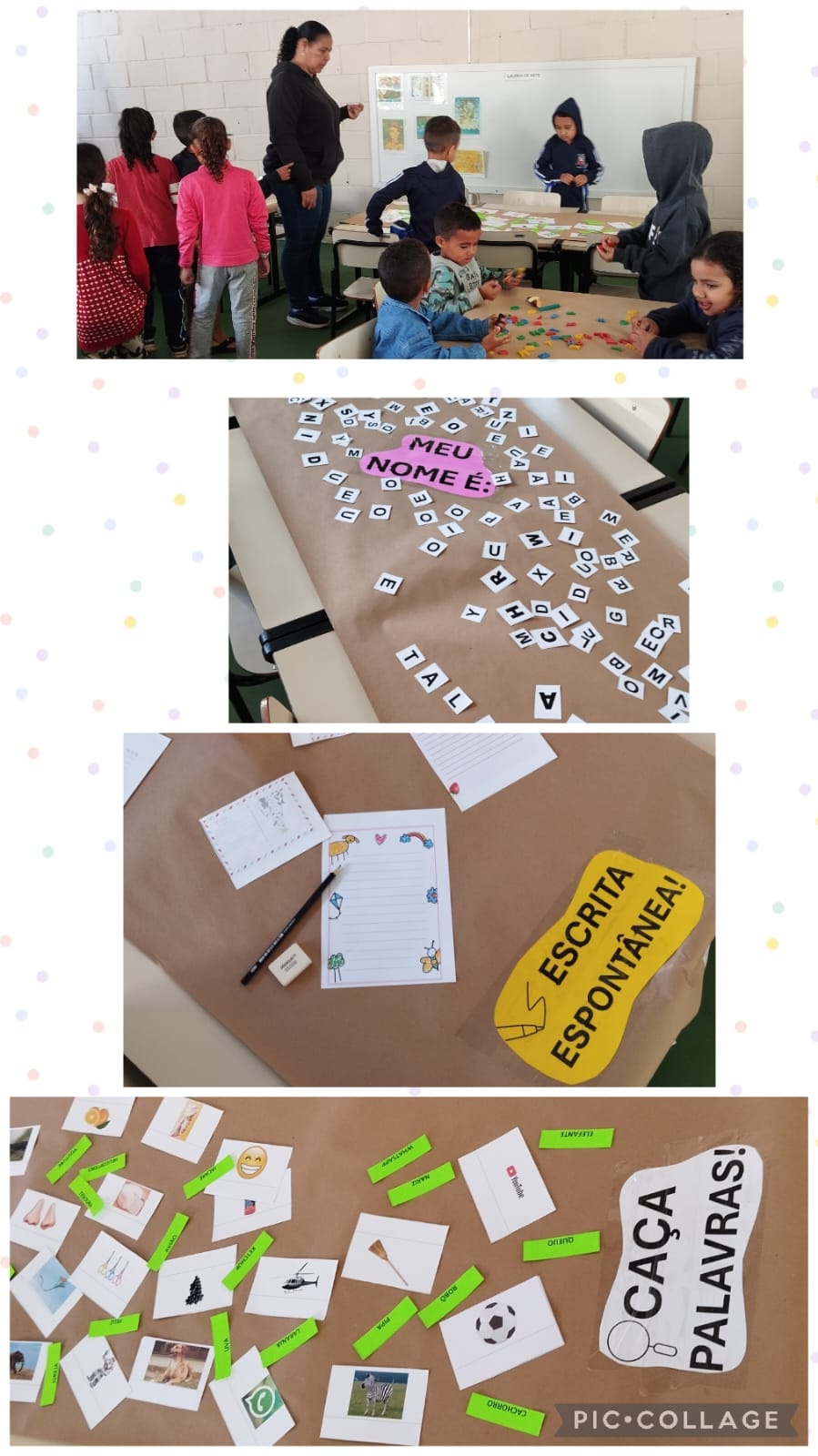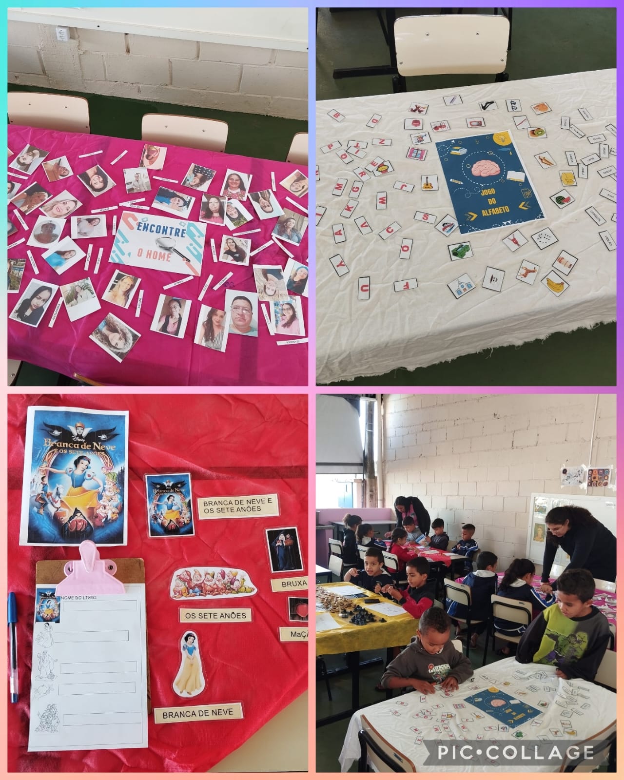 Entre jogos, descobertas da escrita, experiências com o nome próprio e histórias encantadas, as crianças mergulham nesses contextos.