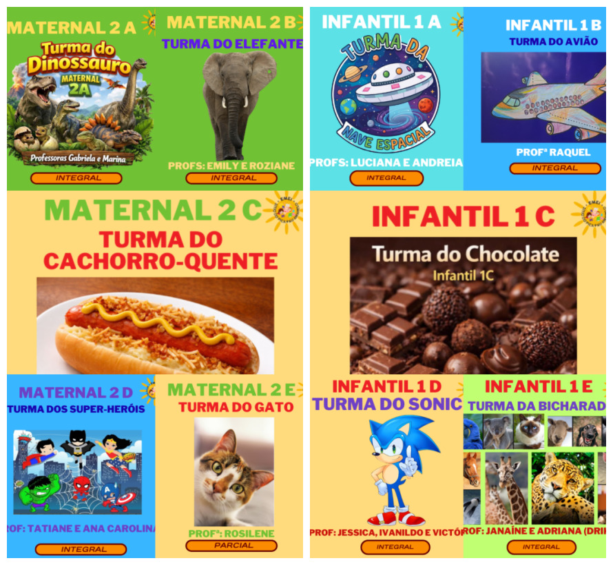 Como parte das atividades do período de acolhimento e inserção das nossas crianças, todas as turmas de nossa unidade escolar estreitam vínculos e realizam a escolha de seus “nomes de turma”. Esse processo é permeado pela democracia, uma vez que a definição parte das próprias crianças, que participam de uma eleição para escolher o nome que irá compor a identidade do grupo. Trata-se de uma prática permanente, já incorporada à cultura da escola, e que, ao longo dos anos, tem evidenciado o envolvimento coletivo. Nesse contexto, é possível perceber as curiosidades, particularidades e a identidade de cada turma, sendo o nome escolhido um dos fios condutores das aprendizagens.