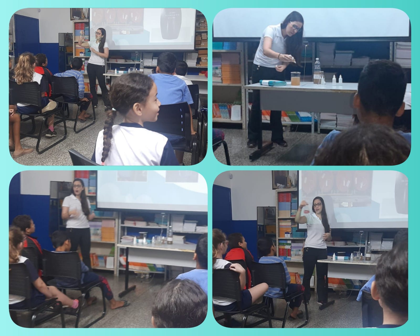 No dia 23/03 a Química Francine, do DAEM - Departamento de Água e Esgoto de Marília, ministrou uma palestra educativa para os 4°s anos sobre a água. Ela fez uma demonstração sobre como é realizado o tratamento da água que é retirada dos rios e represas. A palestra foi muito produtiva e interessante.