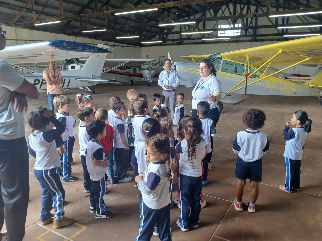 No dia 31 de outubro, as turmas dos Maternais II C e D acompanhadas das professoras Flaviana e Marlene, das ADE Juliana e Bruna e do assistente administrativo David conheceram o Aeroclube de Marília. O passeio integrou o projeto: "Além dos muros da escola: é hora de desvendar nossa cidade" e oportunizou às crianças uma divertida aventura que rendeu memórias e muitas partilhas. As turmas voltaram encantadas e quiseram compartilhar com todos da escola o que vivenciaram no espaço.