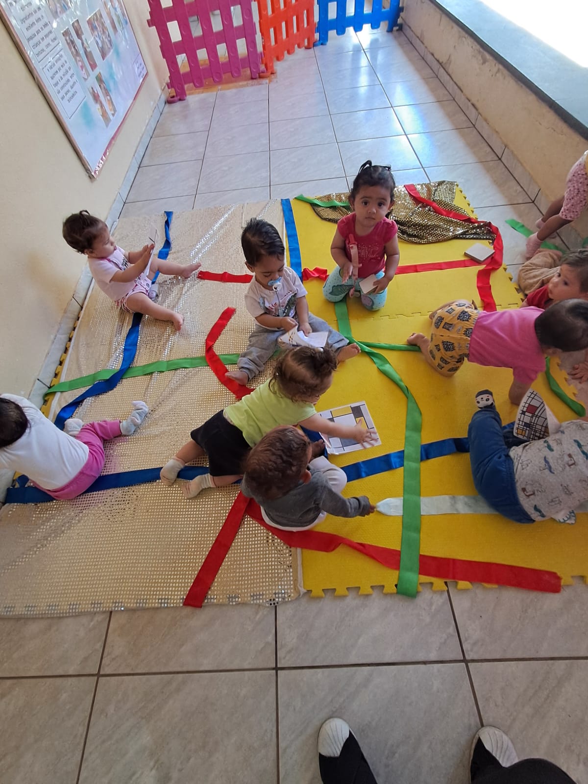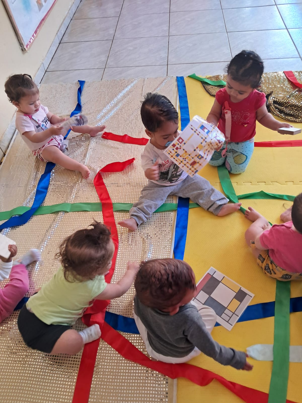 Os bebês da turma do Nível I- A, com a professora Kelly e educadoras Solange e Kelly, viveram a potência das linguagens artísticas a partir das obras de arte do artista Piet Mondrian e Joan Miró, sentimos cores, texturas e a profunda expressão das artes. Exploramos o farfalhar do paetê, a simetria das fitas, a temperatura do metal e o aconchego dos tecidos.