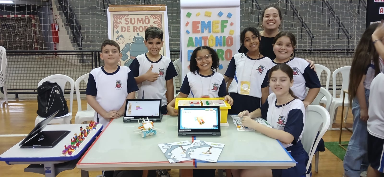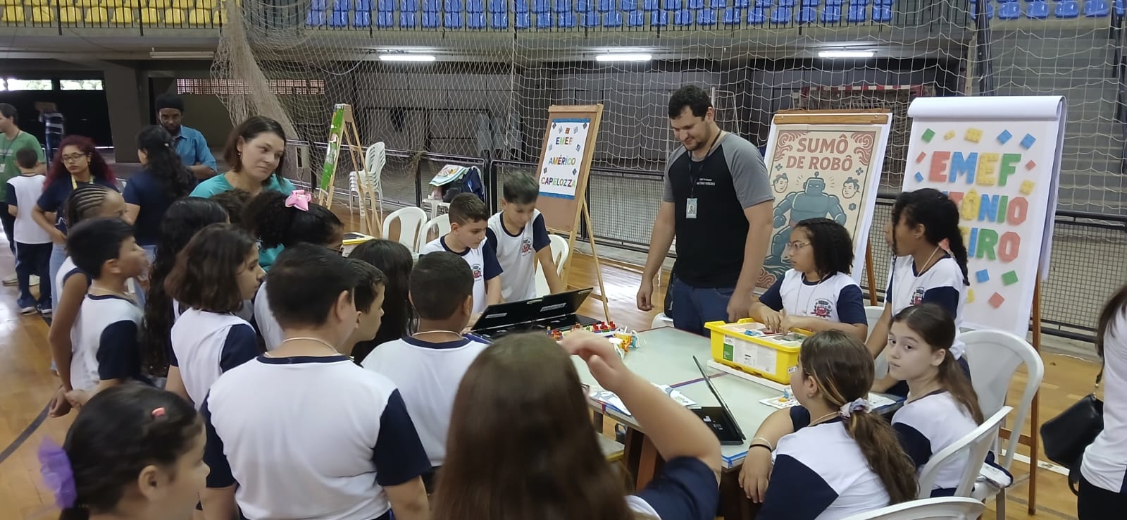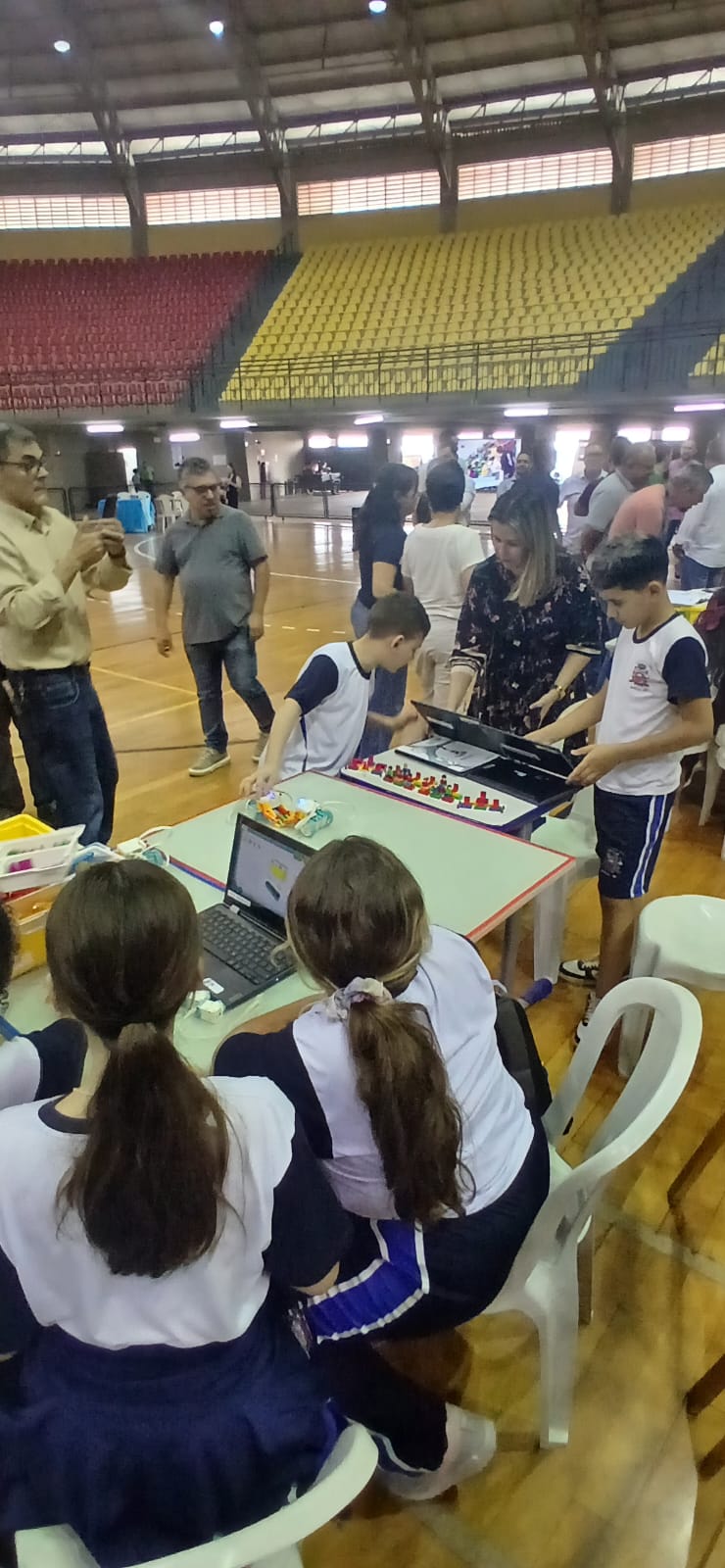 Na última sexta-feira (dia 31), os alunos do 4º ano E, da turma do professor José Carlos da Silva, acompanhados pela Professora Coordenadora Carolina Karol Battistam, representaram nossa escola na 1ª Feira Municipal de Robótica Tecno Kids, realizada no Ginásio Neusa Galetti, na zona Oeste da cidade. O evento foi promovido pela Prefeitura de Marília, por meio da Secretaria Municipal da Educação, e reuniu estudantes do 1º ao 5º ano das EMEFs (Escolas Municipais de Ensino Fundamental) de toda a rede.