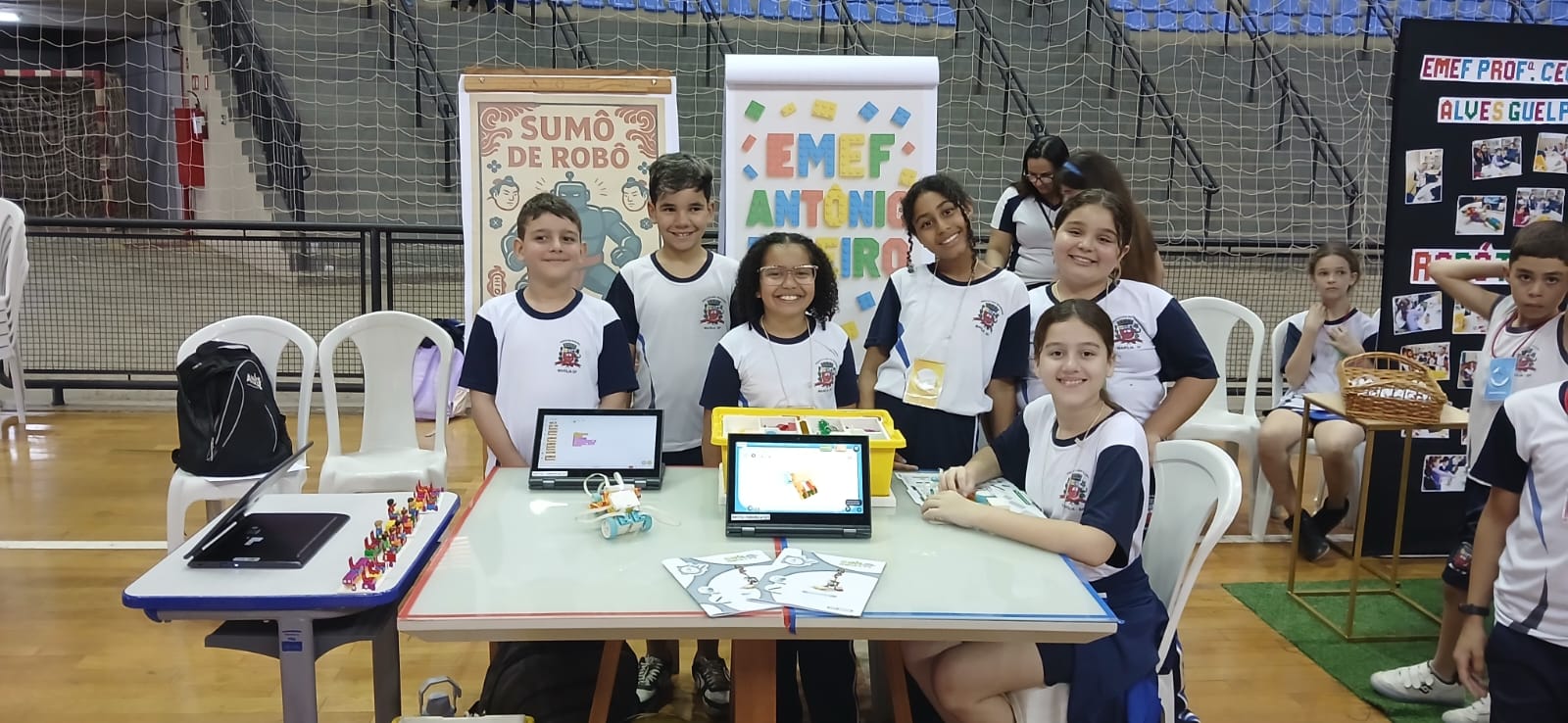 Durante a feira, nossos alunos apresentaram o protótipo de robótica "Sumô de robô", escolhido dentre alguns dos protótipos que foram desenvolvidos em sala de aula ao longo do ano letivo, como parte das atividades do programa de Robótica Educacional. Os visitantes puderam conhecer de perto os projetos, que uniram criatividade, trabalho em equipe e muita inovação.
