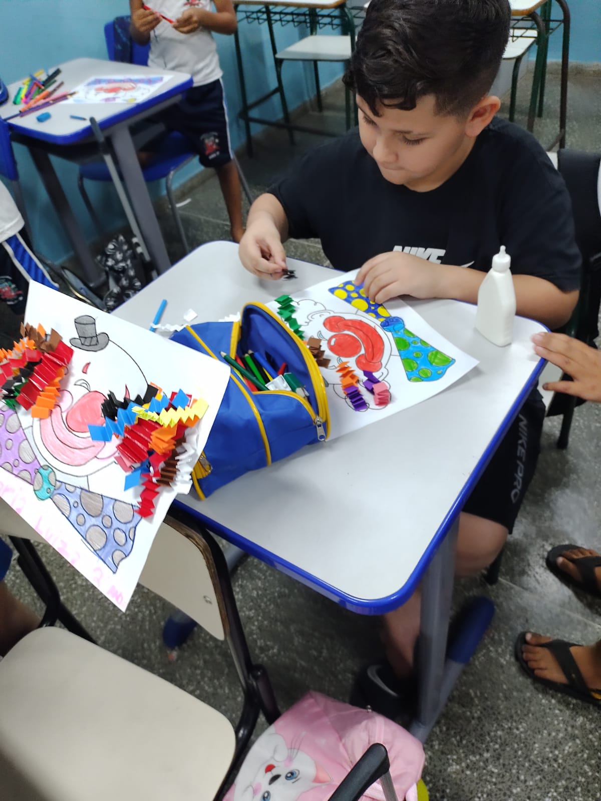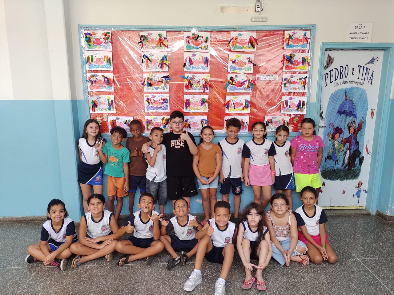 Nosso mural escolar mostra uma atividade artística coletiva realizada pelos alunos do 2º ano F, período da tarde, professora Luciana, da EMEF Professor Antônio Ribeiro. O tema ganhou um significado especial, já que temos em nossa turma um aluno que vive no circo, trazendo ainda mais encanto e proximidade com esse universo.