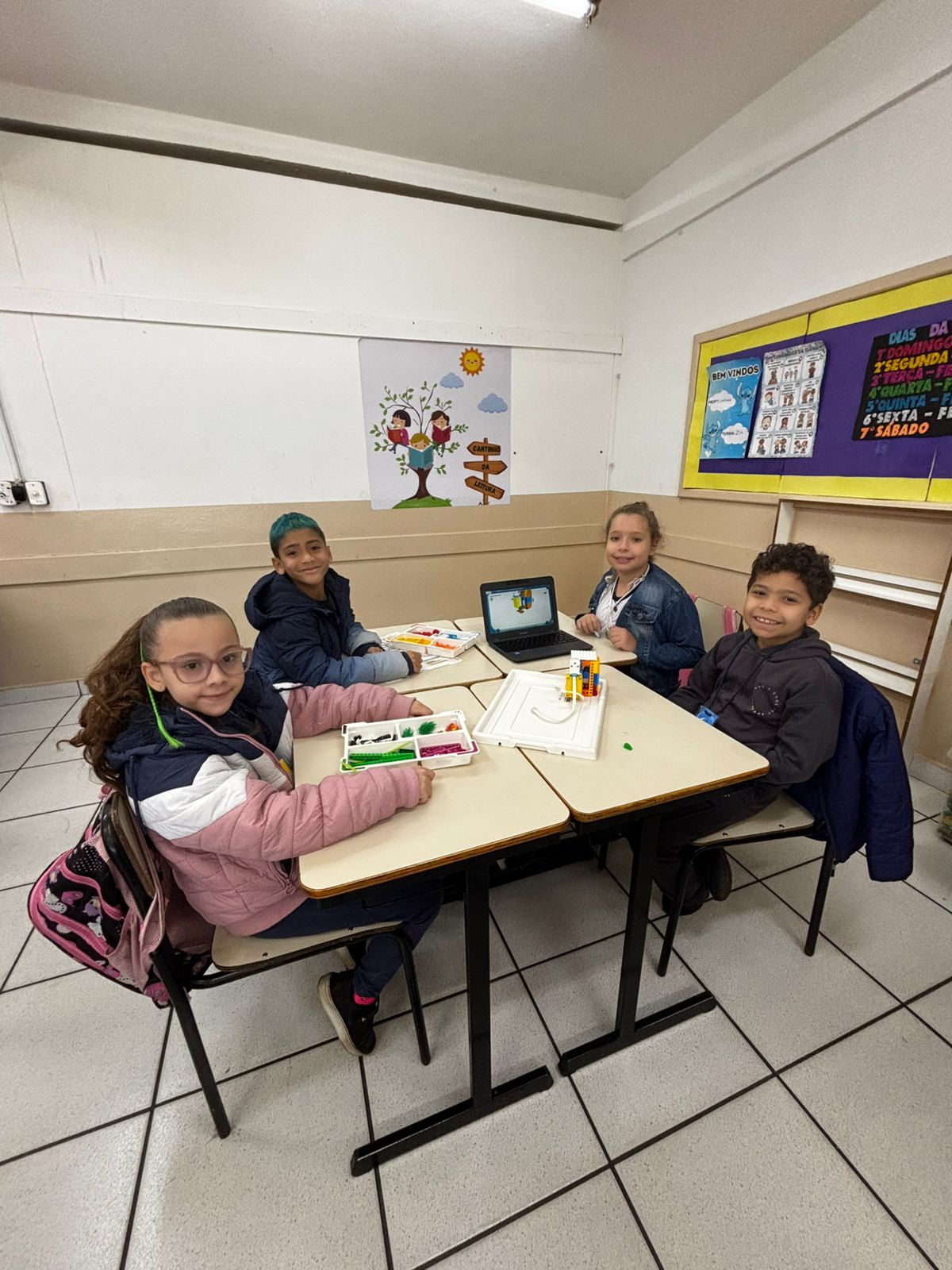 Alunos do 3º ano B participam de aula de robótica e montam protótipo.