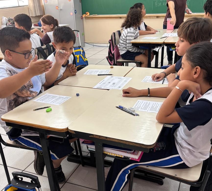 Alunos do 4º B aprendem divisão por meio de jogos matemáticos.