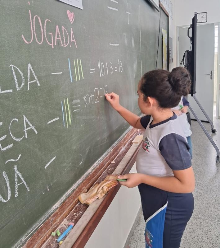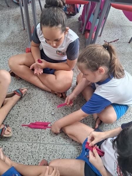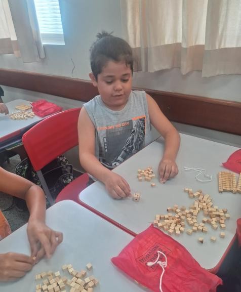 Mais do que apenas resolver contas, a atividade promoveu o raciocínio lógico, a coordenação motora e a colaboração entre colegas, que trocavam experiências e conferiam seus agrupamentos juntos. Com o apoio desses materiais manipuláveis, o aprendizado rompeu as barreiras do caderno, tornando-se uma experiência prática e memorável que fortalece a base matemática para os desafios futuros.