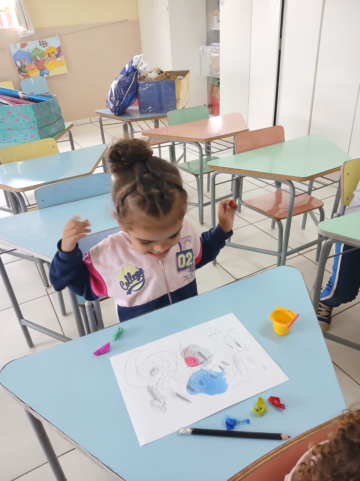 Aqui, cada riscador e cada suporte se transforma em uma nova descoberta. Nossos pequenos experimentam com cores, texturas e formas, desenvolvendo a criatividade e a imaginação.