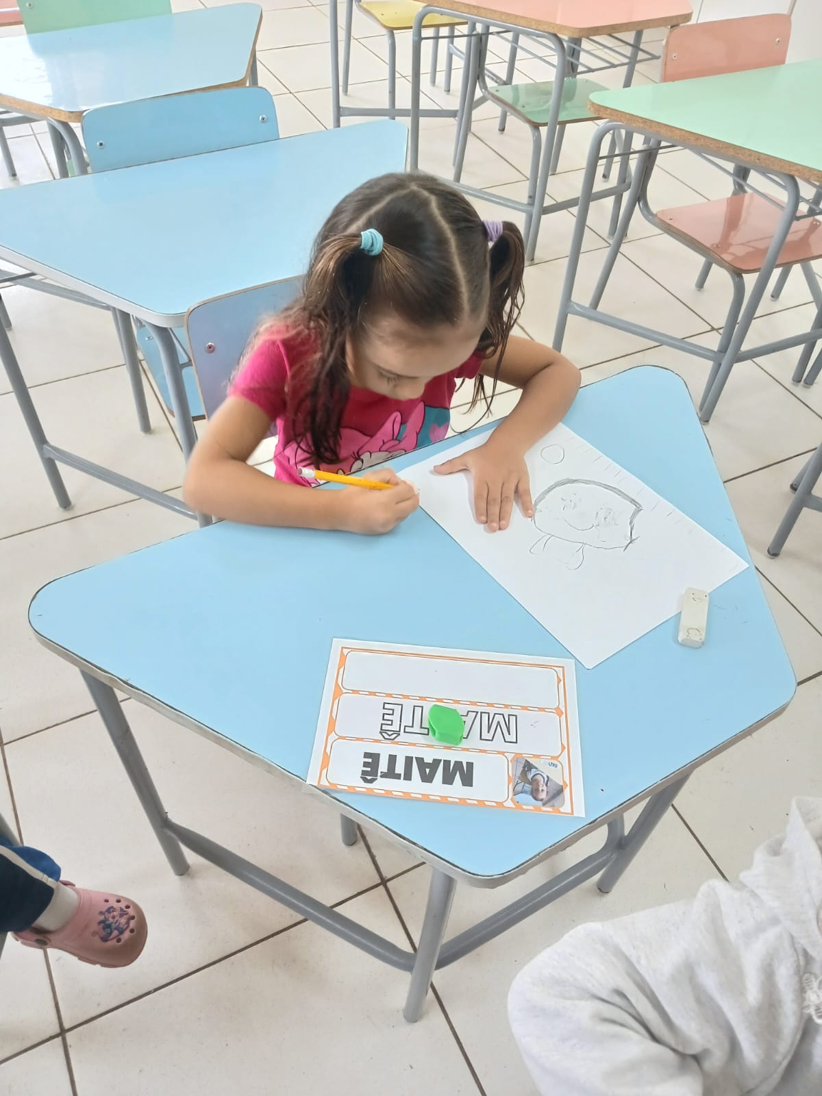 Dentre as ações realizadas, a turma participou de uma palestra simples e enriquecedora com a Coordenadora Lisete e o funcionário da limpeza Pedro Manoel. As crianças também colaboraram na escrita dos convites para esse momento, exercitando a linguagem escrita de maneira significativa.