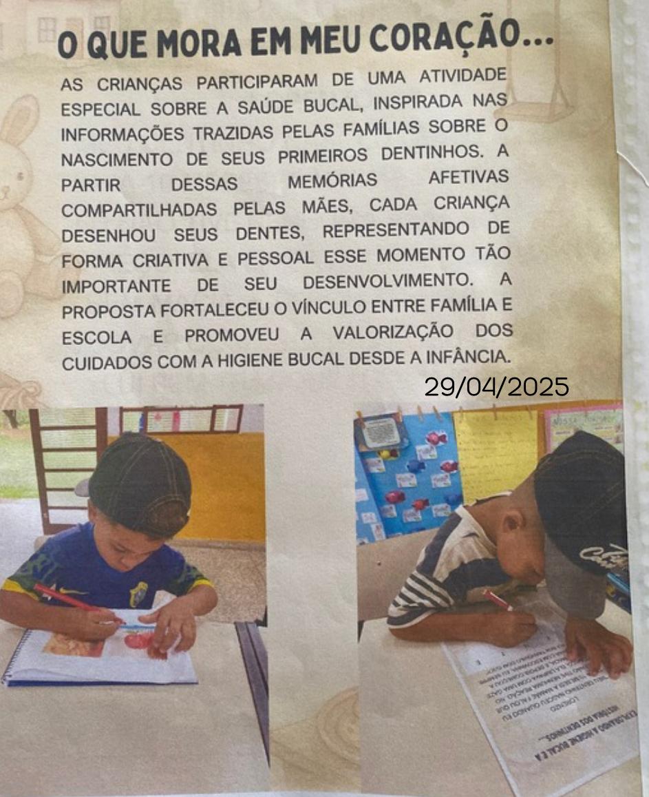 Atividade sobre higiene bucal, informações trazidas pelas crianças por meio de suas famílias sobre o nascimento dos primeiros dentinhos.