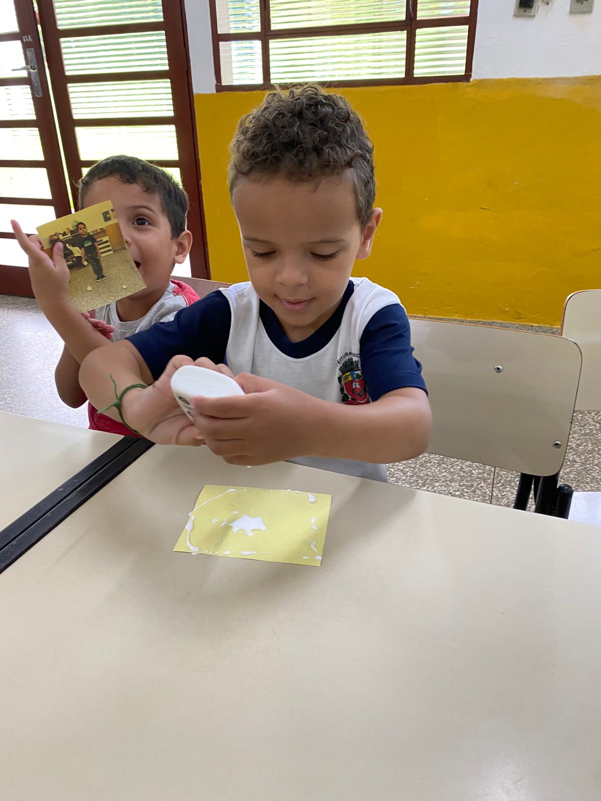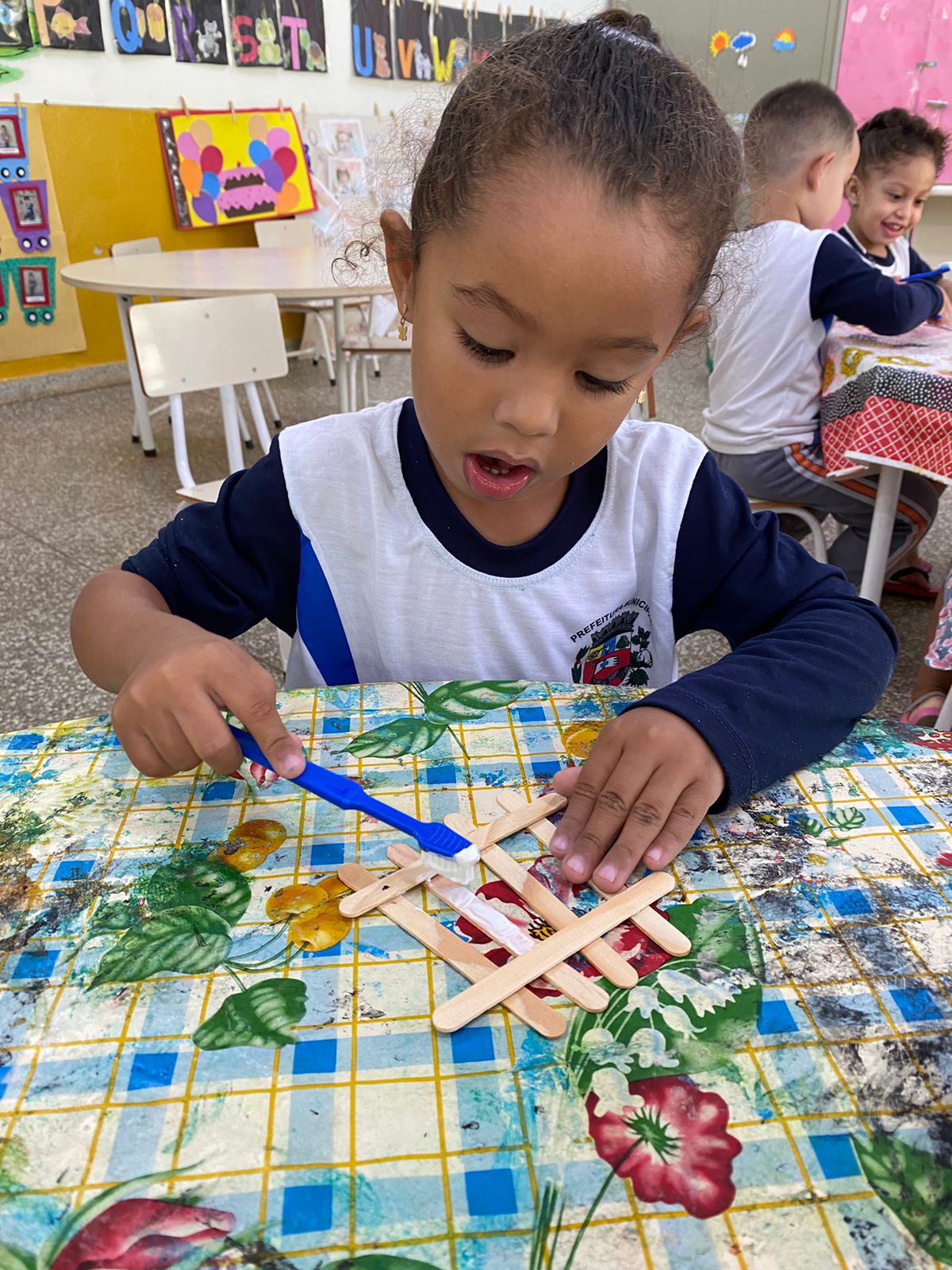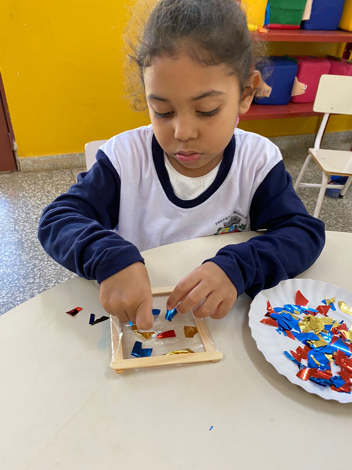 A proposta também favoreceu a exploração dos materiais, a concentração e o contato inicial com atividades de registro, respeitando o tempo e o interesse de cada criança.