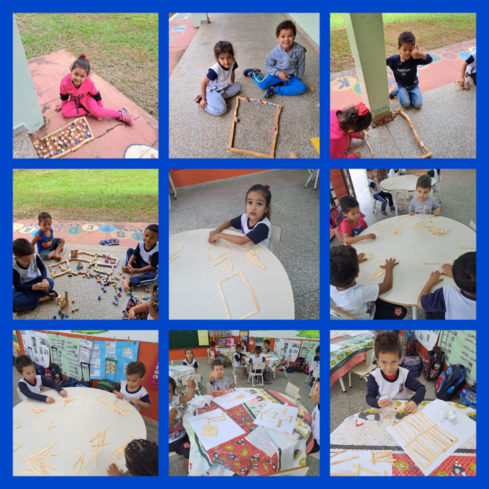 Atividade com a turma multisseriada: Infantil I e II, trabalhando de forma lúdica a nomeação das formas geométricas. As formas que encontramos nos objetos de nossa escola e reprodução das mesmas utilizando blocos de madeira e palitos de sorvete, por fim realização de uma produção artística, onde estejam presentes as formas conhecidas pelas crianças.