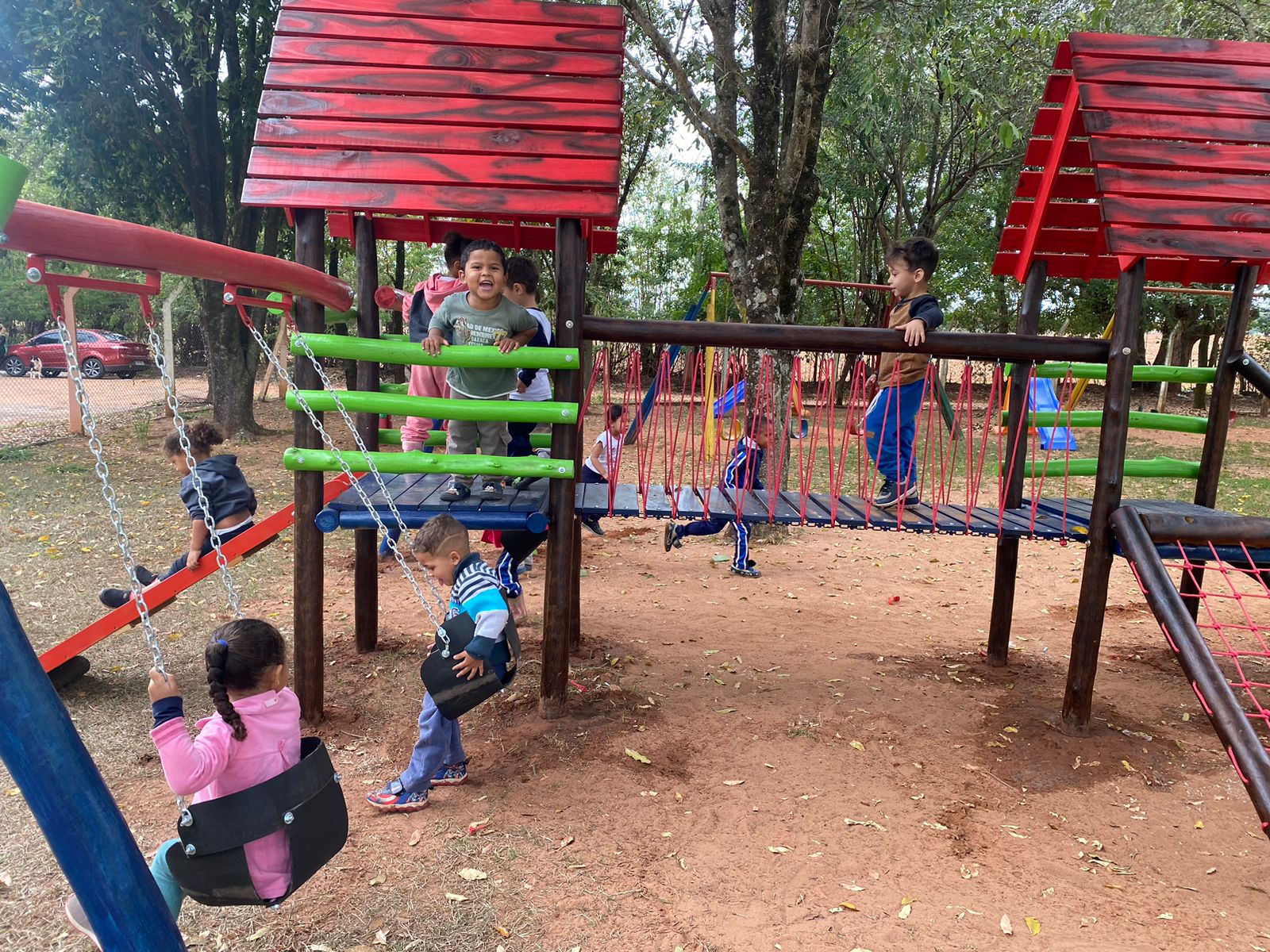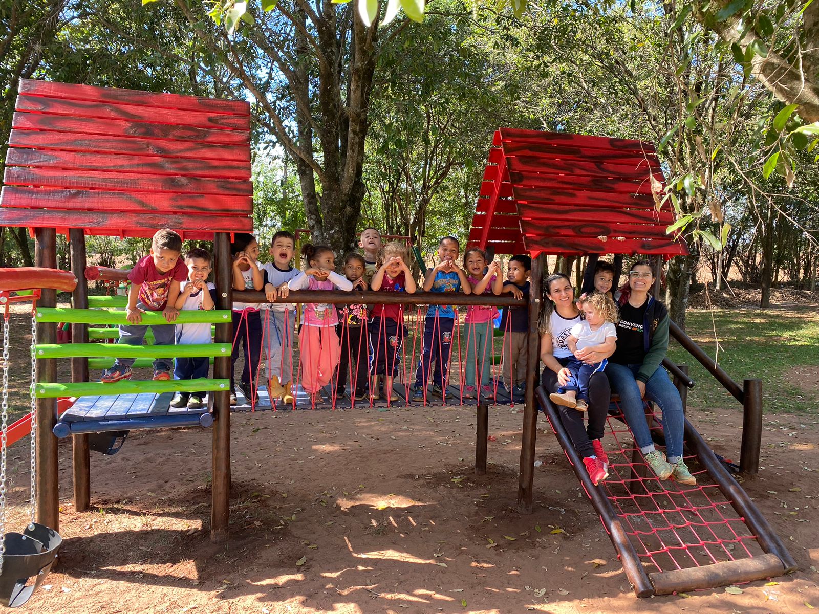 Na volta às aulas as crianças foram surpreendidas com um novo aparelho recreativo, já intitulado por eles como "Parque da ponte!" Foi nítida a alegria de nossas crianças em poder explorar esse espaço e suas potencialidades. Esses momentos do "brincar" são muito importantes, pois estimulam, de forma integral, os aspectos sociais, emocionais, físicos e intelectuais. É através do brincar que a criança forma conceitos, seleciona ideias, percepções entre tantas outras habilidades.