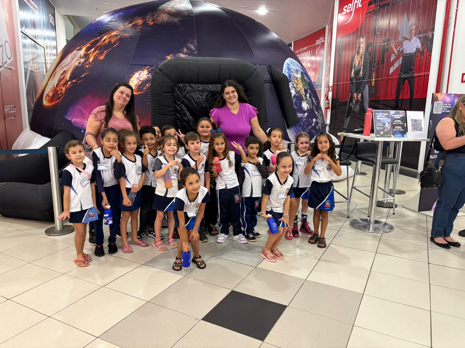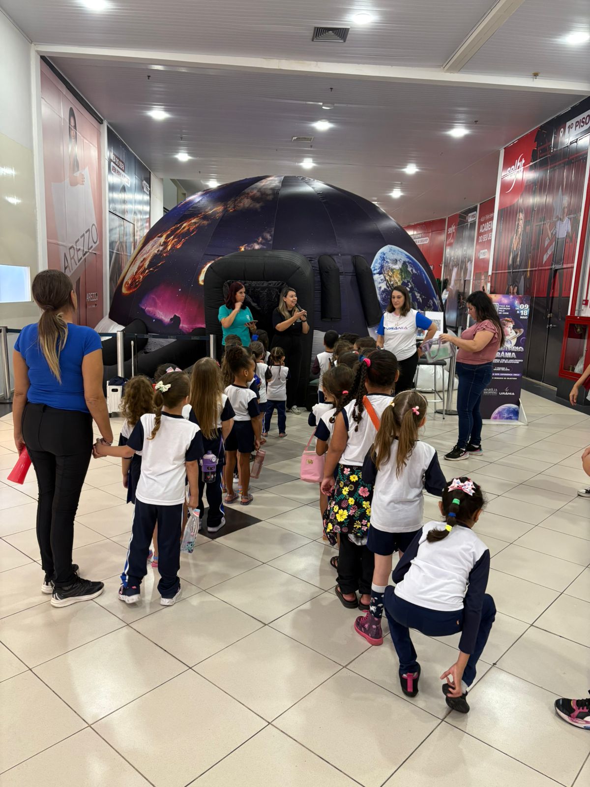 Na EMEI Ciranda Cirandinha, a curiosidade é o ponto de partida para grandes descobertas! Foi com essa vontade de explorar e aprender que as turmas do Infantil 1C da professora Cláudia e do Infantil 2D da professora Juliana embarcaram em uma emocionante aula-passeio ao Planetário do Shopping Esmeralda. 🌠