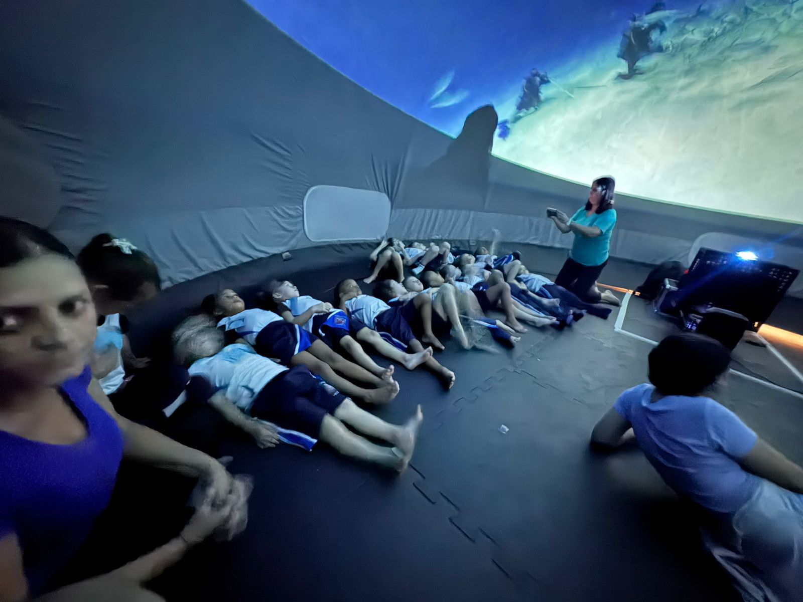 O céu sempre despertou a curiosidade das crianças: “O que tem no céu?” 🌟 Uma simples pergunta deu início a um projeto investigativo cheio de descobertas. No planetário, os pequenos puderam mergulhar no universo, explorando planetas, estrelas e constelações. Cada luz brilhante no céu se transformou em um convite para aprender mais sobre o espaço.