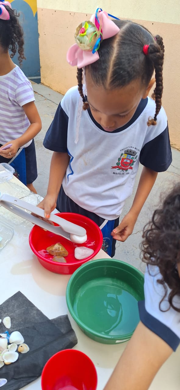 Essa vivência favoreceu o movimento corporal , à medida que pegam, espalham e misturam os elementos, além de provocar a curiosidade e a criatividade na construção de novos significados. A interação entre as crianças possibilitou a comunicação, a troca de hipóteses e a descoberta coletiva, fortalecendo os vínculos sociais e a autonomia na investigação.