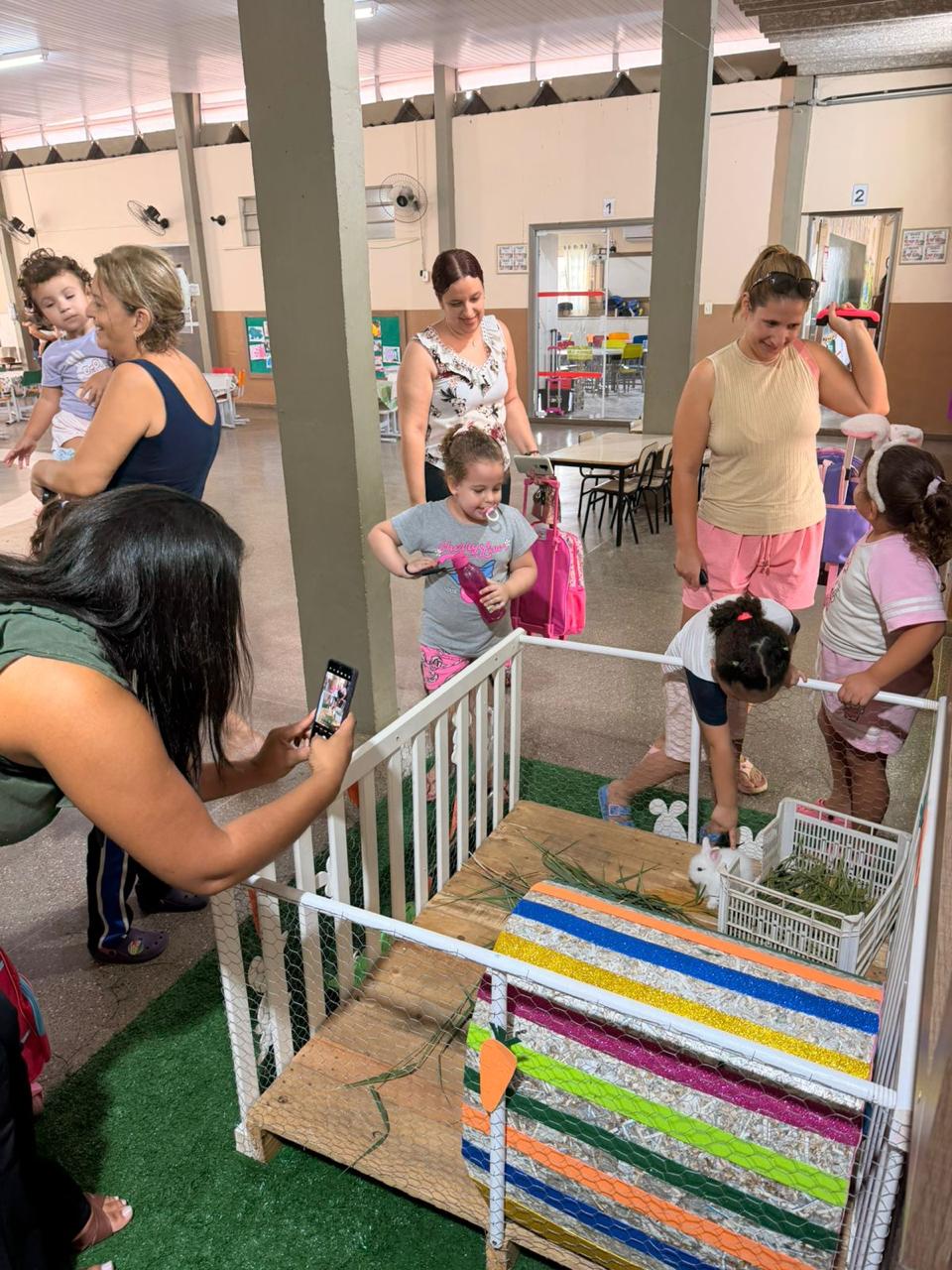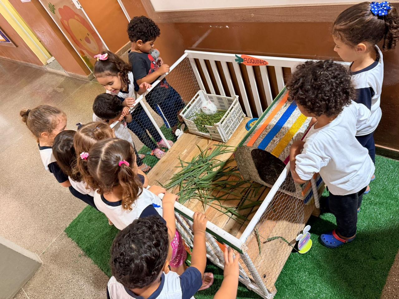 A chegada do coelho na EMEI Ciranda Cirandinha ganhou vida no olhar atento e curioso das crianças, que se aproximaram, observaram, levantaram hipóteses e se encantaram com cada detalhe. Diante desse encontro, o imaginário da Páscoa se fez presente não apenas como uma história, mas como uma experiência vivida, onde o real e o simbólico se entrelaçam nas descobertas e nas interações.