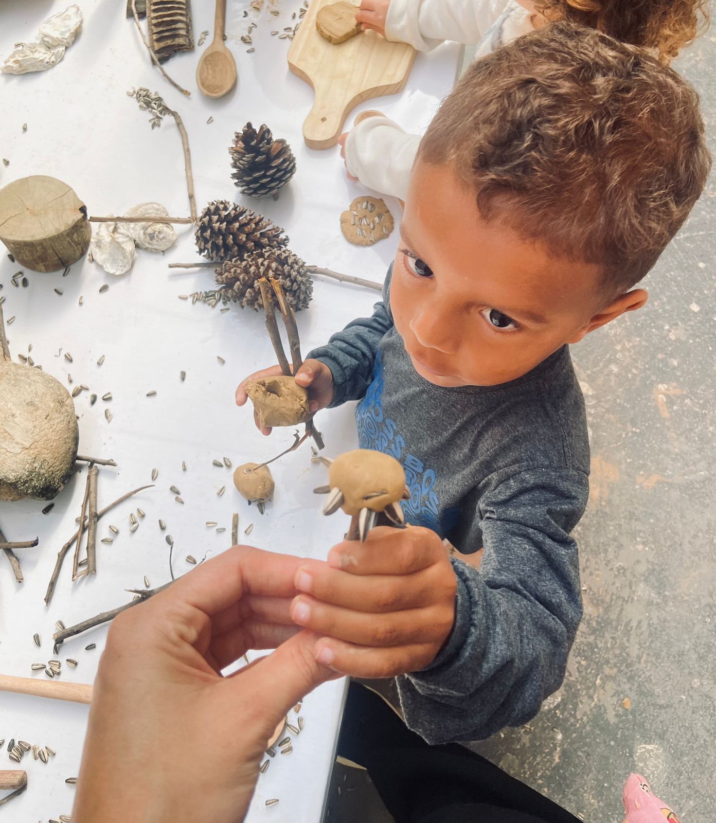 Neste dia, as crianças do Maternal I-B foram convidadas a modelar esculturas de argila, utilizando sementes de girassol, galhos, colheres e elementos naturais! No final, montamos uma exposição na escola, para que os colegas e professores das outras turmas pudessem, também, apreciar!