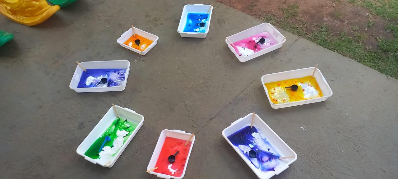 O contexto investigativo com tintas naturais oportunizou que as crianças explorassem, experimentassem e descobrissem as características das tintas de açafrão, beterraba e colorau: cheiro, a textura e o sabor. Ao chegarem nesse espaço as crianças exploraram livremente, tocando, experimentando e reagindo de diferentes maneiras.