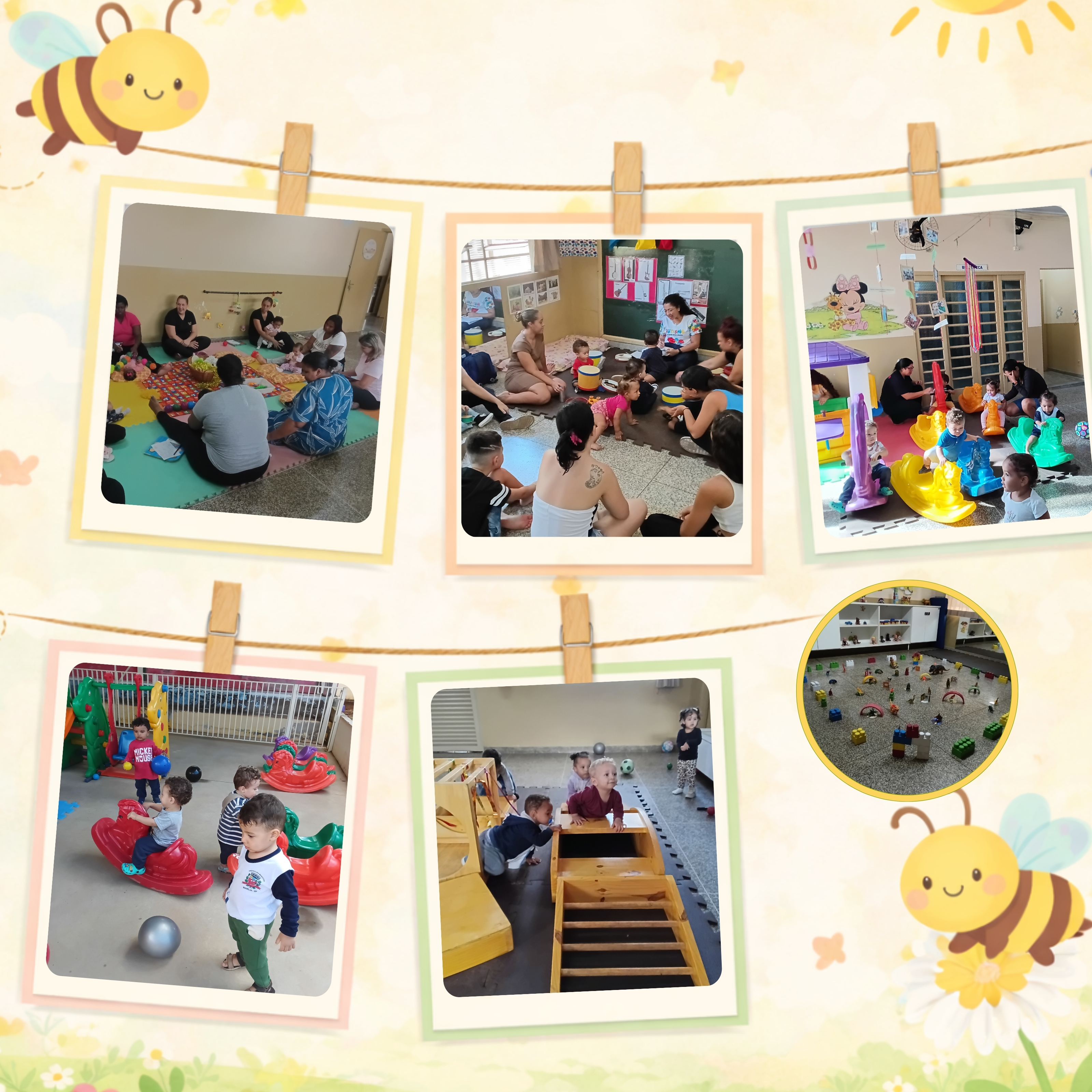 Foi um período de fazer e fortalecer as parcerias com as famílias, de acolhimento das mesmas, transmitir segurança e confiança. Momento de criar laços afetivos com as crianças, as professoras organizaram assim brincadeiras, recursos, materiais estruturados e não estruturados, manipulação e exploração de objetos e etc., preparando e ofertando um ambiente seguro, estimulante e possibilitando atenção individual.