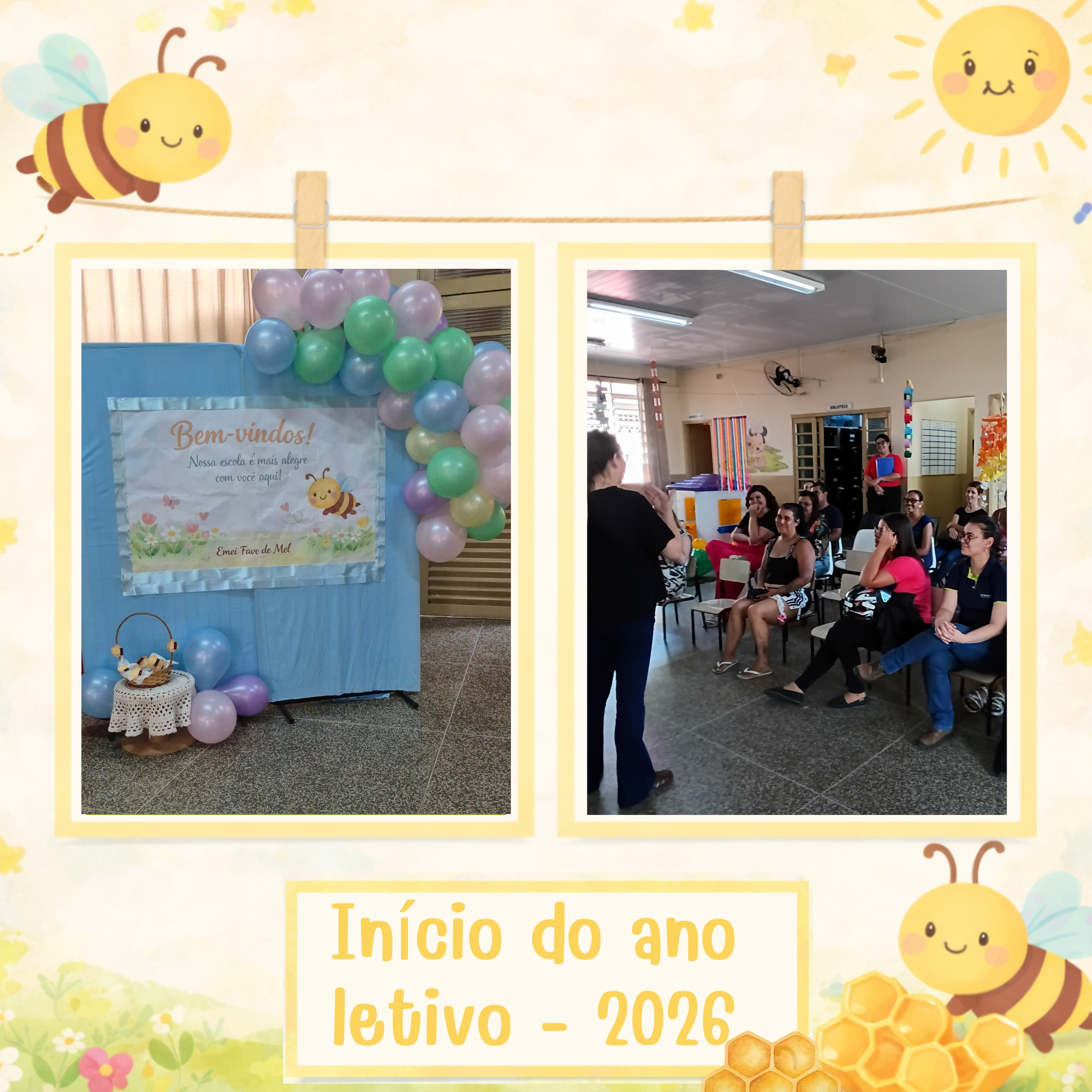 A EMEI Favo de Mel iniciou o ano letivo de 2026 no dia 04 de fevereiro. A programação do primeiro dia foi dividida entre o acolhimento da equipe escolar e a reunião com as famílias sendo nosso ponto de partida essencial para a construção de vínculos.