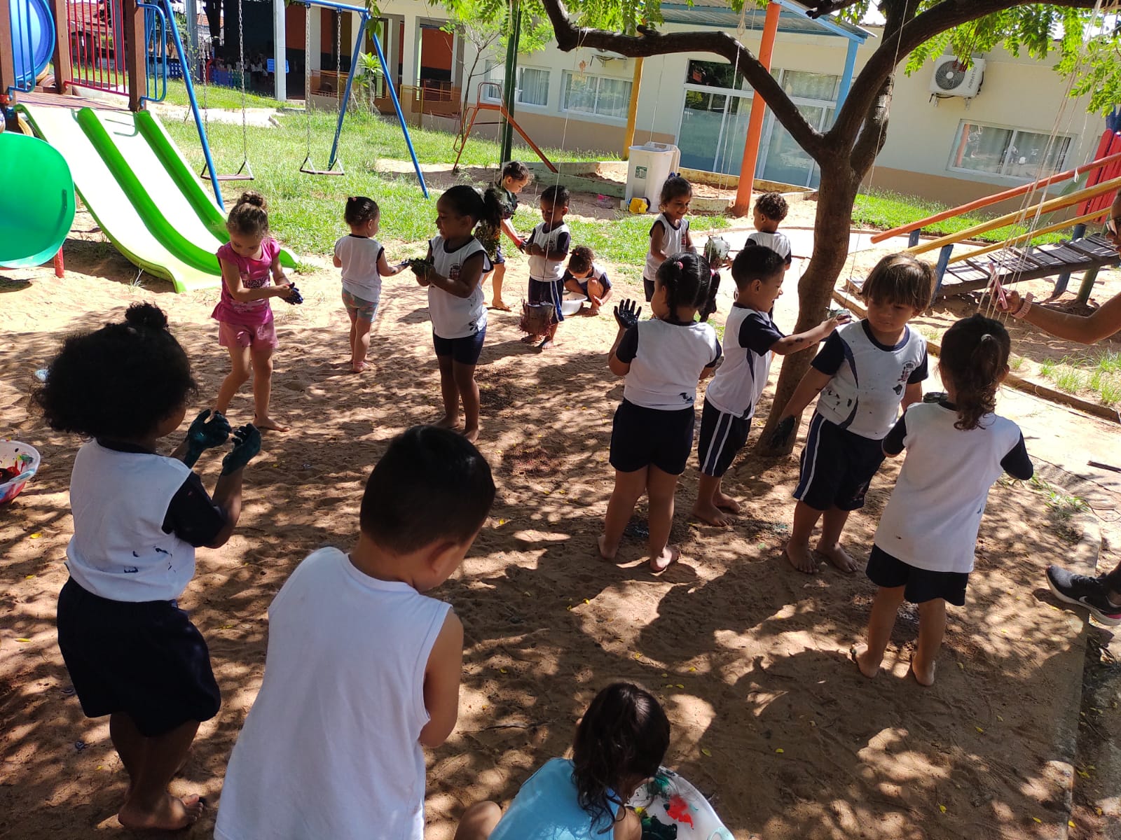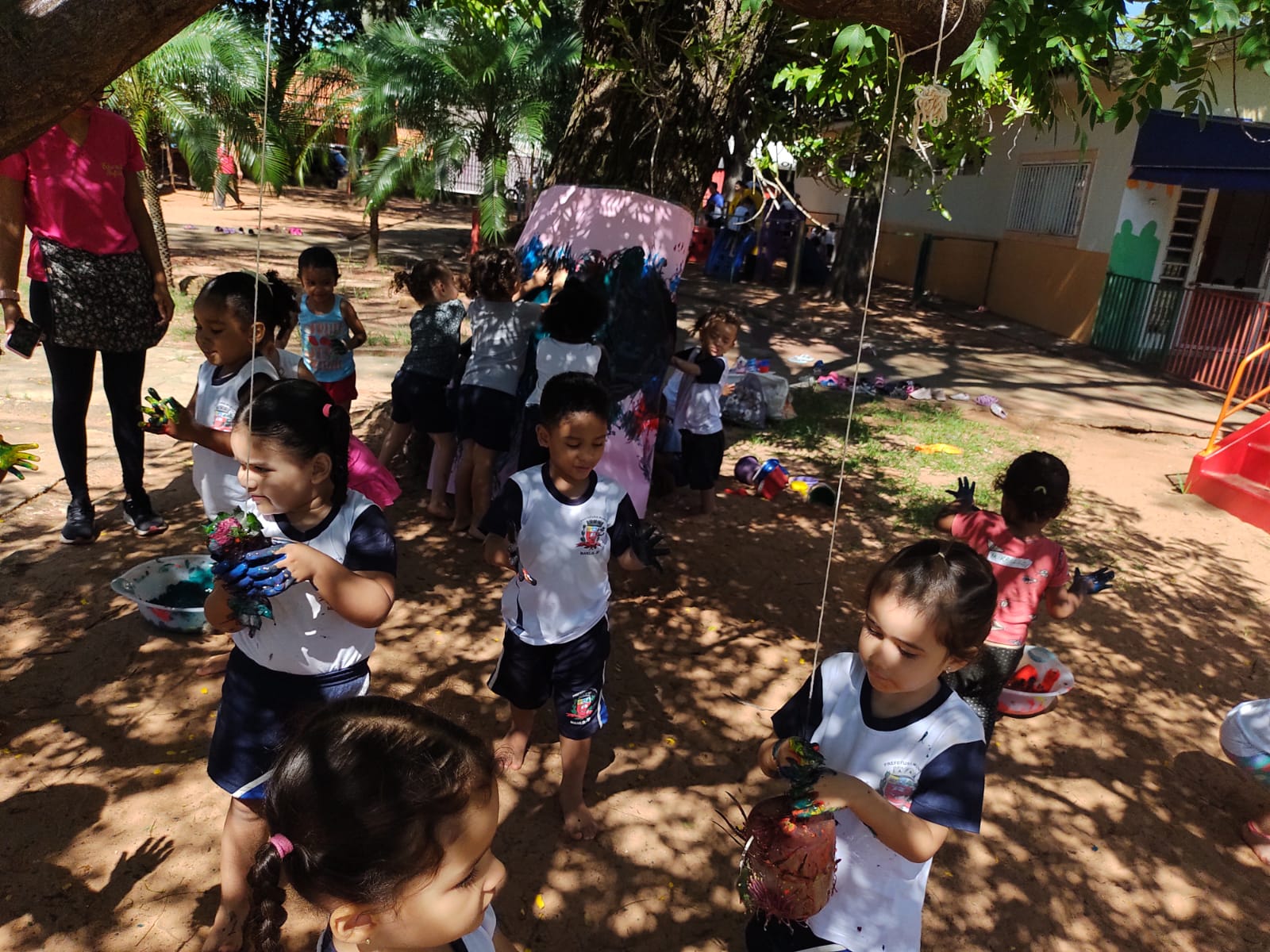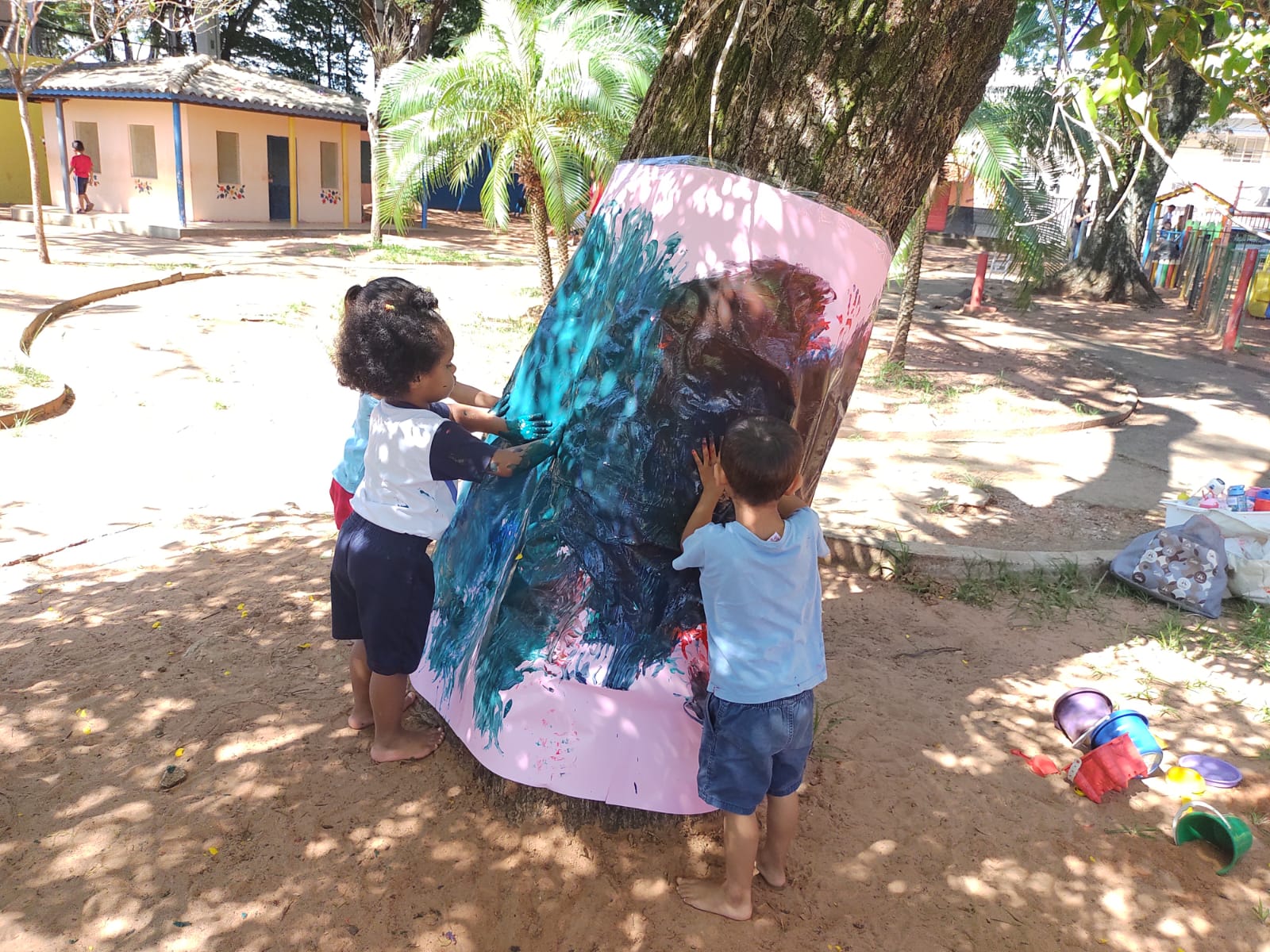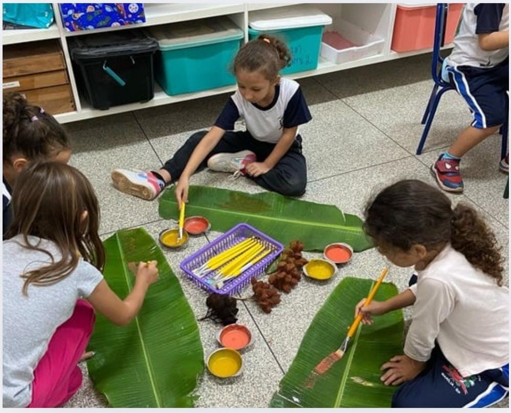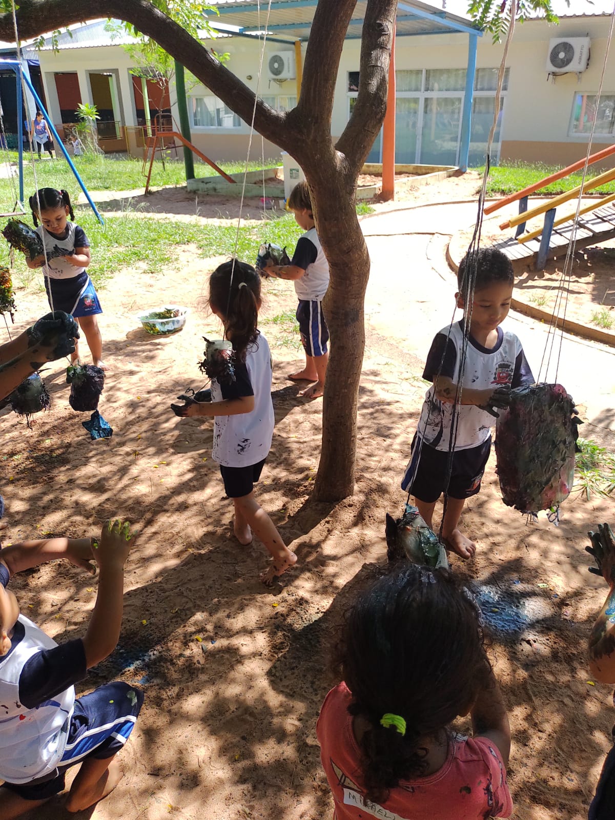 Dessa forma, as crianças foram convidadas a vivenciarem distintos momentos que possibilitaram pesquisas, investigações e descobertas nos espaços da área externa da nossa escola".