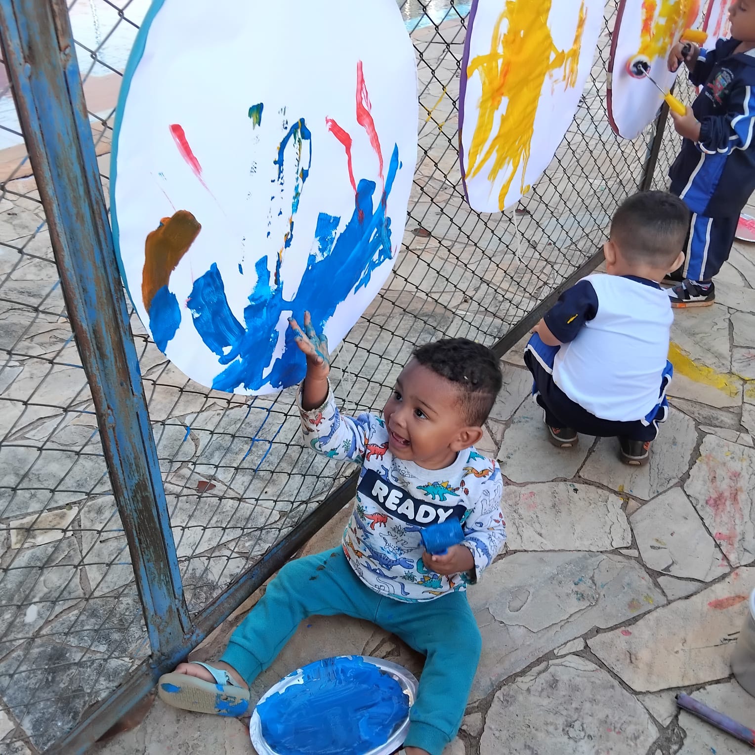 As crianças, encantadas com a proposta, exploraram os materiais livremente. Tocaram o gelo, observaram as flores, sentiram a temperatura, misturaram tintas e realizaram suas próprias descobertas de forma espontânea. A atividade possibilitou múltiplas aprendizagens, promovendo o desenvolvimento da percepção sensorial, da coordenação motora, da curiosidade e da criatividade.