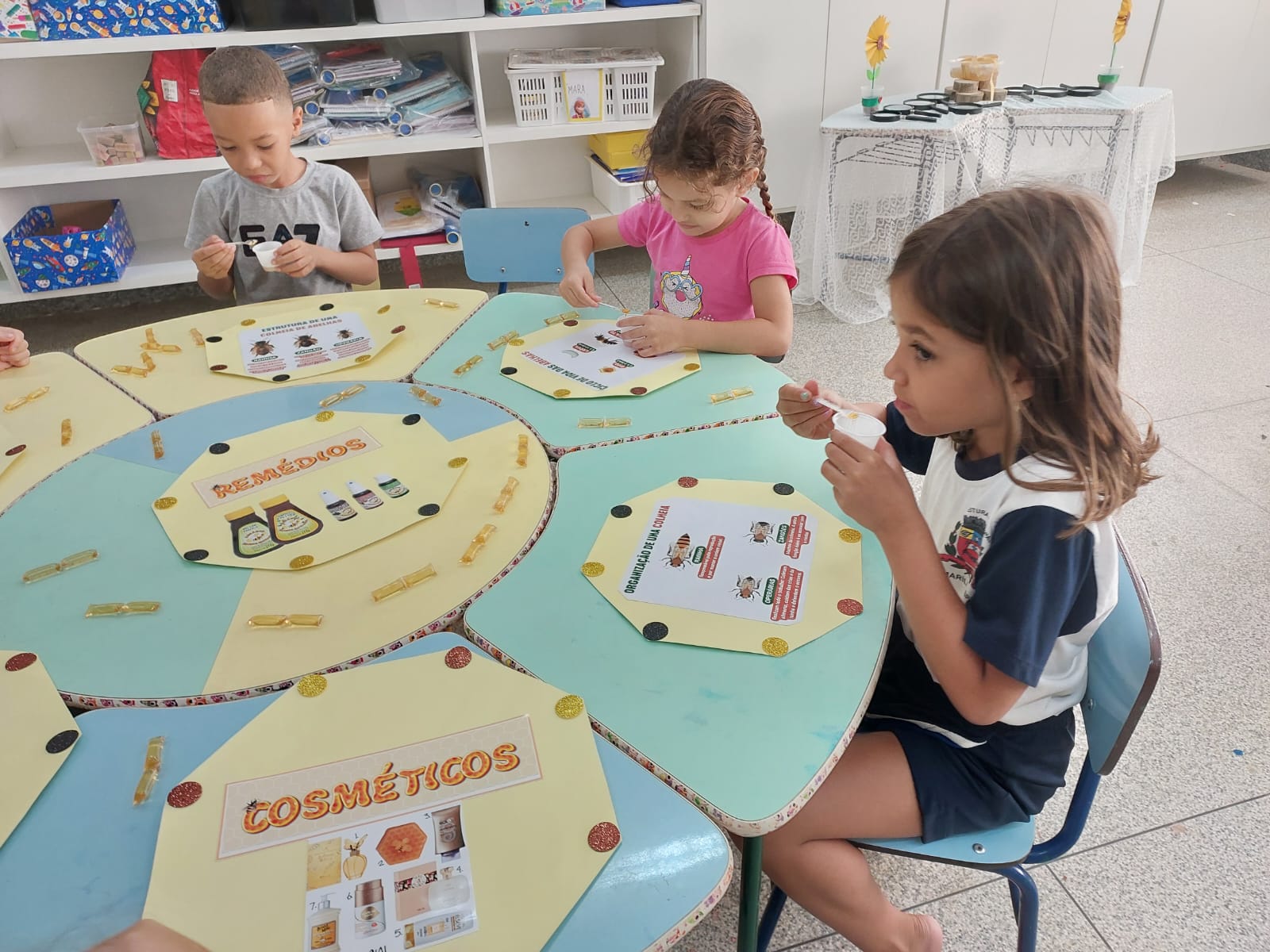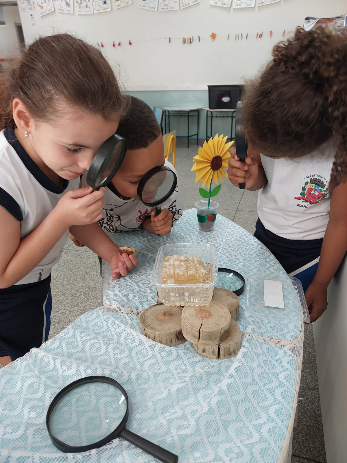 as crianças tocaram, sentiram e se encantaram.