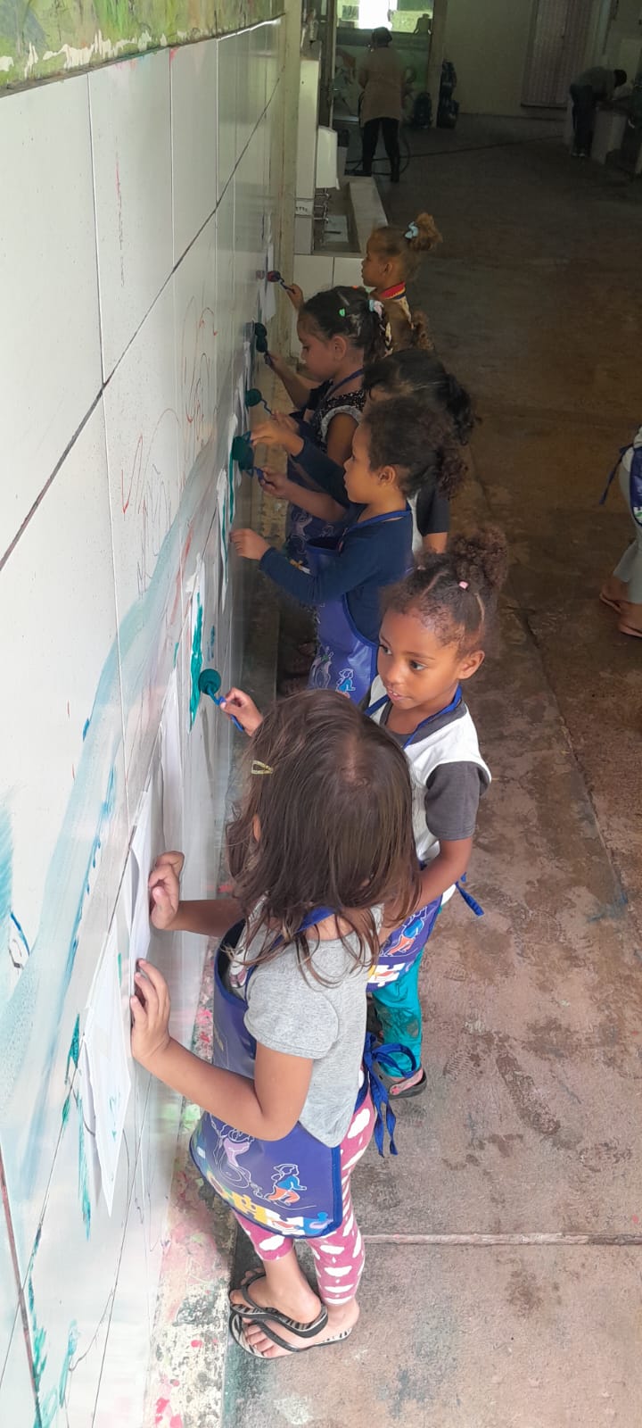 No mês de abril, as crianças da turma do Unicórnio, Infantil II A, da professora Jaqueline, viveram uma proposta de pintura diferente. Utilizando bexigas como suporte e esmaltes como riscadores, foram convidadas a experimentar novas possibilidades de criação. As bexigas, penduradas no varal, trouxeram um desafio especial: para conseguir desenhar, as crianças precisaram descobrir novos modos de segurar e apoiar suas mãos, movimentando-se de maneira criativa e inventiva, e construindo saberes sobre como agir diante de uma situação nova, ampliando suas formas de expressão e sua relação com os materiais.
