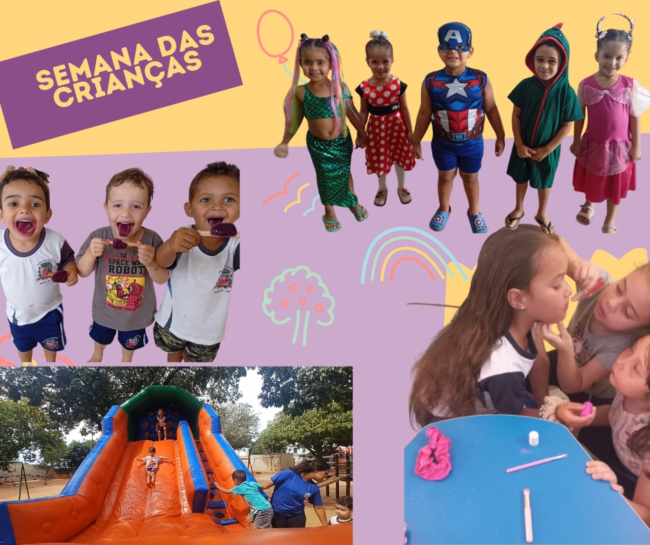 Nossa Semana das Crianças foi repleta de encantos, sorrisos e muita diversão! Durante esses dias tão especiais, vivenciamos momentos que ficarão guardados na memória de todos. As crianças embarcaram em aventuras criativas, participaram de atividades lúdicas e significativas, exploraram os espaços da escola e fora da escola com curiosidade e alegria, e compartilharam experiências cheias de imaginação e afeto. Foi, sem dúvida, uma semana inesquecível, celebrando a infância em toda a sua beleza, espontaneidade e magia!